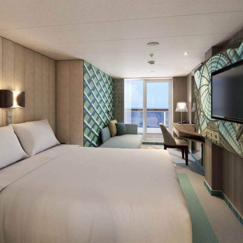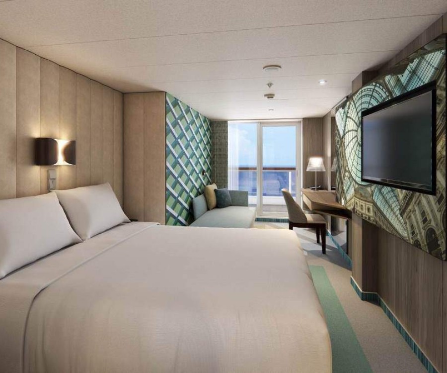 Para este gran viaje disfrutaras de una Cabina con balcón y vista al mar, es el espacio ideal para vivir cada amanecer y atardecer en el Mediterráneo. Las cabinas están equipadas con aire acondicionado, TV de pantalla plana, caja fuerte y secador de pelo.