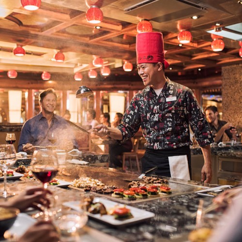 Tendrás desayuno, comida y cena en restaurantes asignados en buffet self-service, con variedad de platos internacionales y opciones frescas cada día. Para algo diferente, podrás reservar en el Teppanyaki Restaurante y disfrutar del espectáculo culinario japonés en un ambiente único.