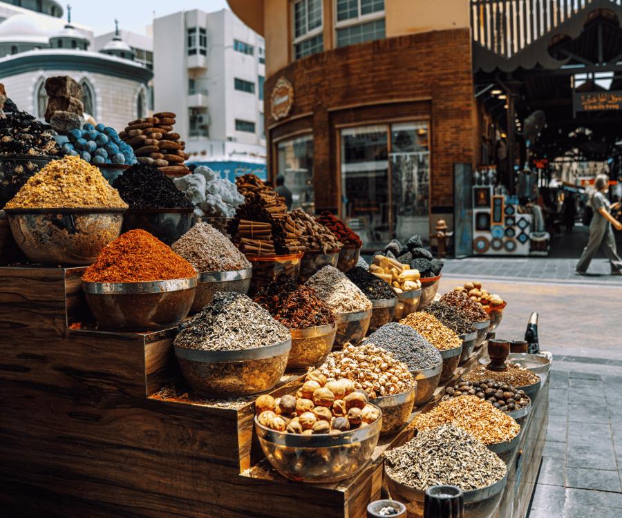 Continuaremos cruzando el arroyo en un Abra, el tradicional taxi acuático, para conocer la historia comercial que dio vida a la ciudad. El recorrido culminará en los zocos del oro y las especias, un lugar vibrante donde aromas y colores despiertan todos los sentidos. Será el momento perfecto para compartir experiencias con otros viajeros del grupo.