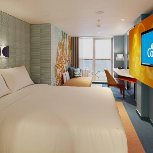 Los camarotes han sido diseñados pensando en su máximo confort. Disfruta de las cabinas exteriores con balcón privado y vista al mar.