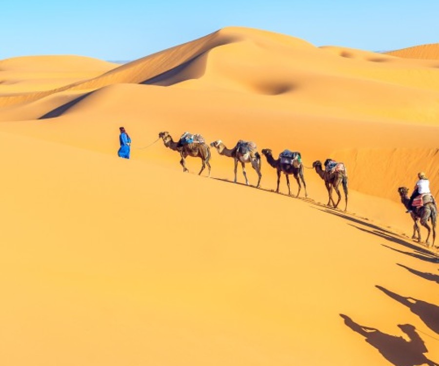 Descubriremos Marrakech a través de nuestro pack experiencial opcional. Pasaremos una mágica noche en el desierto de Agafay. Dormiremos en una jaima y cenaremos en torno a una fogata al más puro estilo marroquí mientras disfrutamos de un espectáculo tradicional.