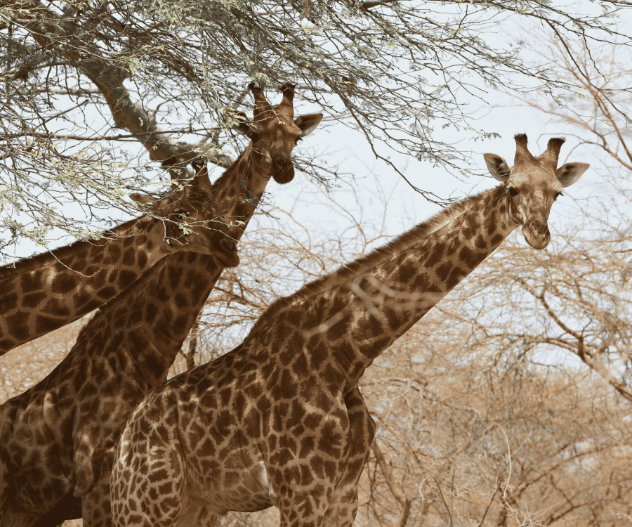 Emocionante safari fotográfico en camiones todo terreno. Avistaremos fauna africana (jirafas, rinocerontes, cebras y búfalos) y veremos cocodrilos y tortugas gigantes.