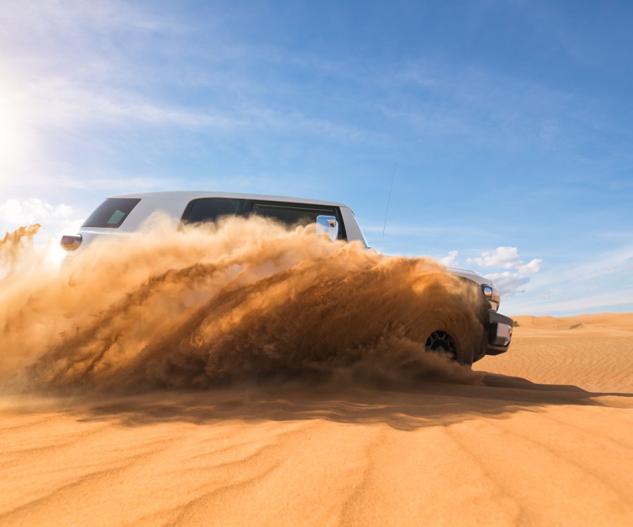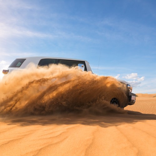 Por la tarde, cambiamos el autocar por vehículos 4x4 para adentrarnos en el desierto y llegar al campamento. La jornada termina bajo las estrellas, compartiendo la cena y descansando en tiendas equipadas con baño privado.