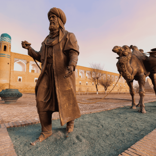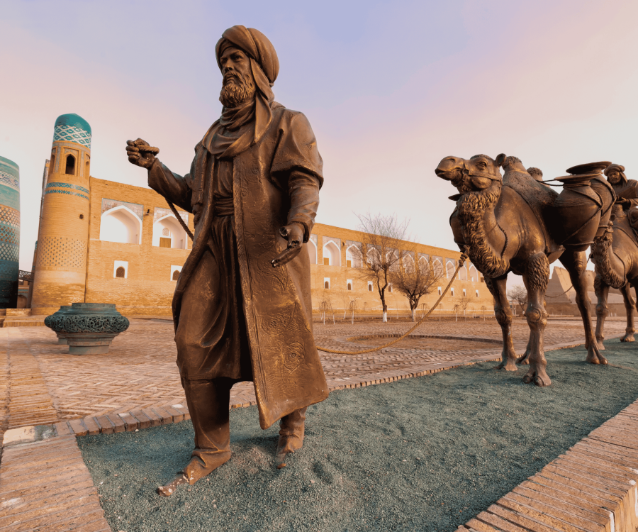 Exploración de la Ruta de la Seda Visitarás los complejos monumentales de Ichan-Kala, Poi-Kalon y la espectacular Plaza Reguistán. Descubrirás el legado de Tamerlán y el arte ancestral de la fábrica de papel.