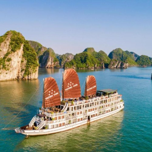 Victory Star Cruise ofrece alojamiento de 5 estrellas en Ha Long, frente a la playa, y tiene salón de uso común, terraza y restaurante. Este crucero está muy bien situado en el barrio de Bãi Cháy y ofrece bar, además de bañera de hidromasaje. El alojamiento dispone de recepción 24 horas, traslado para ir o volver del aeropuerto, club infantil y wifi gratis.