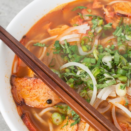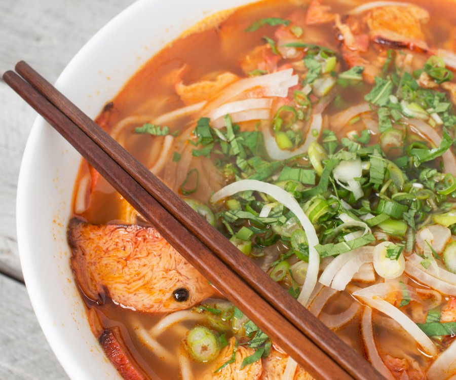 La cocina vietnamita es fresca, aromática y equilibrada. Platos emblemáticos incluyen el Pho (sopa de fideos de arroz con carne y hierbas), el Bánh mì (baguette rellena) y la crepe de arroz Bánh xèo. Las comidas suelen compartirse en el centro de la mesa y se utilizan palillos.